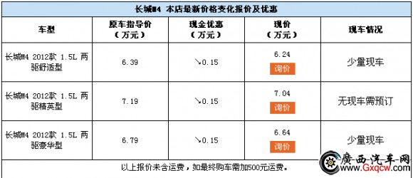 為了回饋廣大車友對(duì)廣西長(zhǎng)道的一直以來(lái)支持,為了使消費(fèi)者提前享受意想不到的實(shí)惠,讓想要購(gòu)車的市民朋友能夠提前享受到車展上的優(yōu)惠.廣西長(zhǎng)道隆重推出“車展政策提前享”活動(dòng),特供少量現(xiàn)車,長(zhǎng)城M4現(xiàn)金直降1500元。更有驚喜豪禮。銷售熱線:0771-2330301