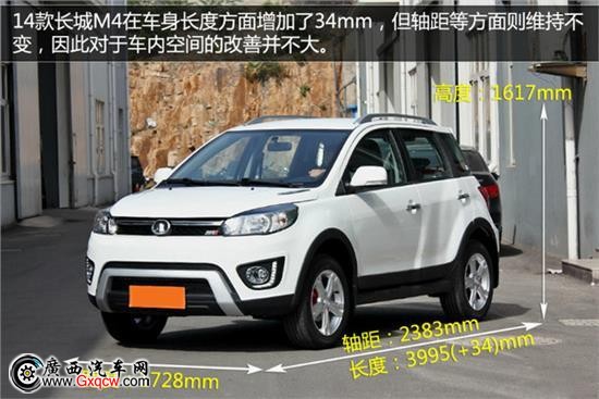 在車身尺寸方面,14款長城M4并沒有盲目地跟隨“大”的熱潮而擴大三圍,而是僅在長度上增加了34毫米,其余軸距及寬度保持不變。