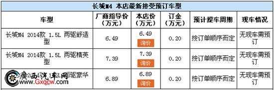 近日,廣西長道汽車銷售服務有限公司店內(nèi)長城M4新車到店,感興趣的朋友們抓緊機會前來預定吧!詳細情況見下表: