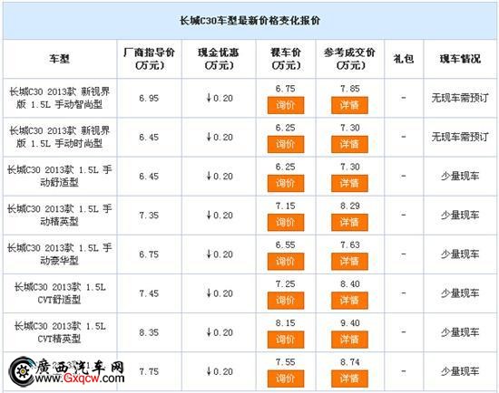 中秋佳節(jié)即將來臨,您是否打算全家外出環(huán)境好的地方賞花賞明月品茗茶,過個(gè)不一樣的中秋呢?不論去哪兒,廣西長道長城汽車都隨您所心,達(dá)您所至!長城C30現(xiàn)金直降2000元,無現(xiàn)車需預(yù)定。先訂先得,趕緊行動(dòng)吧!家轎之王長城C30給您不一樣的新體驗(yàn),升級(jí)蛻變,盡領(lǐng)時(shí)尚風(fēng)向,全新內(nèi)裝,逸享愜意舒適,持久進(jìn)化,品質(zhì)超越期待。感興趣的朋友可以到店咨詢購買,廣西長道服務(wù)熱線:安吉大道(往武鳴方向)高速路口長城4S店(0771-2330301);白沙大道亭江立交旁(金灣花城斜對(duì)面)長城4S旗艦店:(0771-5780390)。我們將竭誠為您服務(wù)!