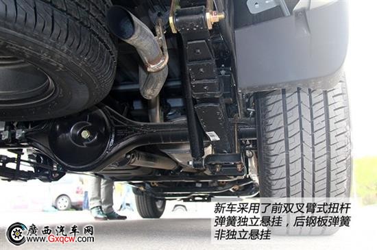 風(fēng)駿6采用了前雙叉臂式扭桿梁獨立懸掛,后鋼板彈簧非獨立懸掛。該車的懸掛調(diào)校相對偏軟,柔軟的懸掛可以輕松的過濾掉不規(guī)則路面帶來的顛簸感。但與此同時,對于車輛的支撐性會相對差一些,在高速行駛的過程中,如果需要進行緊急并線等操作時,車身的側(cè)傾角度會相對較大。