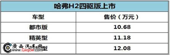 日前,長城汽車正式推出哈弗H2四驅(qū)版本,提供都市版、精英型、尊貴型三款車型,普通款售價(jià)為10.68萬-12.08萬元。