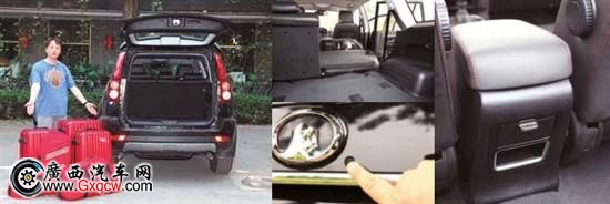 大、中號行李箱三個(gè),外加兩個(gè)大包一個(gè)背包,行李空間雖然沒有數(shù)據(jù),但從裝的行李就能感覺到它的空間非常實(shí)用;把后座椅掀起,后座椅靠背可以放平來拓展空間。開啟尾門的按鍵可不太容易找;雖然是自動(dòng)空調(diào),但在后排沒有設(shè)置一個(gè)出風(fēng)口,對于后排乘客來說是個(gè)遺憾。