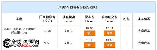 底價(jià)風(fēng)暴倒計(jì)時(shí)!瘋狂底價(jià),限時(shí)搶購,優(yōu)惠無底線!11月25日-11月30日,廣西長道為回饋廣大車友的支持,讓消費(fèi)者以更大的優(yōu)惠價(jià)格買到自己喜愛的車。風(fēng)駿6現(xiàn)金直降4000元,提供少量現(xiàn)車,顏色可選。全方位的服務(wù)與優(yōu)惠讓您享受*優(yōu)質(zhì)的體驗(yàn)!更多驚喜就在廣西長道,更多資訊與優(yōu)惠請到店或撥打我們的400電話!我們竭誠為您服務(wù)!廣西長道服務(wù)熱線:安吉大道(往武鳴方向)高速路口長城4S店(0771-2330301);白沙大道亭江立交旁(金灣花城斜對面)長城4S旗艦店:(0771-5780390)。我們將竭誠為您服務(wù)!
