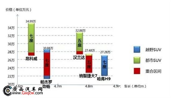 **個發(fā)現(xiàn)是哈弗H9在其細分區(qū)間幾無對手。是的,哈弗H9在20-30萬全地形七座越野SUV這一市場區(qū)間沒有對手。從自主層面講,七座中大型SUV有比亞迪S7與吉利豪情,但無論是售價還是功能性上這兩款自主SUV同H9都無法形成直接競爭。從合資產(chǎn)品來看,H9的原型車豐田普拉多售價高達50萬,幾乎是H9價格的兩倍,而別克昂科威、漢蘭達定位于城市SUV且售價均大幅度高于H9,其最低配的價格完全可以買到H9*高配的產(chǎn)品,在不考慮功能性定位的前提下,當消費者面臨選自主哈弗H9*高配還是昂科威最低配的選擇時,如果退回10年前,答案恐怕會毫無例外的指向昂科威等合資品。但如今,一方面自主品牌技術、品質(zhì)不斷精進,另一方面汽車市場消費觀念日趨成熟,消費者如今會做出怎樣的選擇將是個問號。