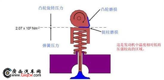【以配氣機(jī)構(gòu)為例:其潤(rùn)滑就比較不充分,它不像曲軸下面有機(jī)油,每轉(zhuǎn)一下可以把機(jī)油攪上去,它只能通過飛濺上來的機(jī)油進(jìn)行潤(rùn)滑(飛濺潤(rùn)滑),所以配氣機(jī)構(gòu)基本上處于邊界潤(rùn)滑狀態(tài)】