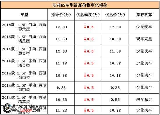 購(gòu)車,你最想要的是什么?是用心的服務(wù)?還是切實(shí)的優(yōu)惠?是快速的提車時(shí)間?還是看這里!這里——有你想要的車展價(jià)!這里——有你想要的完美用心服務(wù)!哈弗H2現(xiàn)金優(yōu)惠5000元,提供部分現(xiàn)車。選擇廣西長(zhǎng)道,買(mǎi)車不貴,用車更便宜!廣西長(zhǎng)道服務(wù)熱線:安吉大道(往武鳴方向)高速路口長(zhǎng)城4S店(0771-2330301);白沙大道亭江立交旁(金灣花城斜對(duì)面)長(zhǎng)城4S旗艦店:(0771-5780290)。我們將竭誠(chéng)為您服務(wù)!