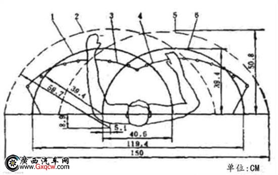 駕駛室內(nèi)的一切手動操作扭件、桿件、開關(guān)等位置均應(yīng)在駕駛員手能觸及的范圍之內(nèi)。駕駛員手部觸碰區(qū)就可以用來檢驗操縱件在駕駛室中的布置位置合理與否。使用頻率高的扭件開關(guān)盡量布置在駕駛員眼睛不動就能看到的范圍內(nèi)(如雨刮及大燈組合開關(guān))。操縱力度大的扭件開關(guān)應(yīng)布置在比較靠近駕駛員的位置(比如有些車的倒檔要往下摁才能掛得上)。