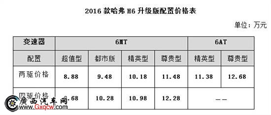 3月16日,2016款哈弗H6升級版上市,售價為8.88萬元起。新車搭載6MT、6AT變速器,兩驅(qū)、四驅(qū)共計10種配置可選。在保持原有超高品質(zhì)的前提下,2016款哈弗H6升級版對售價和配置進行了優(yōu)化,并且推出超值型,給顧客更多選擇空間。