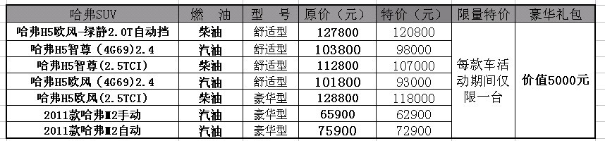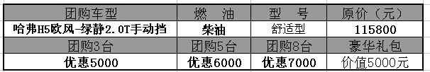 為了感謝八桂地區(qū)廣大車友對廣西長道汽車銷售服務(wù)有限公司成立一年來的支持和認(rèn)可,恰逢新年將至,我公司整合公司資源,特推出針對哈弗H5綠靜2.0T的喜樂團(tuán)購會(huì),針對綠靜2.0T機(jī)頭的SSUV,首次*高優(yōu)惠7000元,另贈(zèng)送豪華超值大禮包價(jià)值5000元!另針對部分車型推出年度級(jí)的超值優(yōu)惠。廣西長道汽車一直遵循“讓就讓得實(shí)實(shí)在在、送就送得明明白白”的消費(fèi)者讓利理念,讓您“精打細(xì)算”,開開心心過新年!團(tuán)購名額有限,敬請從速預(yù)約!