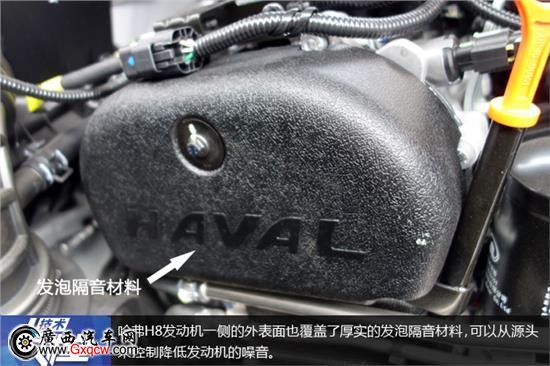 發(fā)動機(jī)運(yùn)轉(zhuǎn)時(shí)的聲音是較大的一個(gè)噪音源,如何從源頭降低噪音就顯得十分重要。哈弗H8在發(fā)動機(jī)罩甚至是發(fā)動機(jī)機(jī)體表面都覆蓋了厚實(shí)的隔音降噪特性的發(fā)泡材料,*大程度上來減小發(fā)動機(jī)噪音。