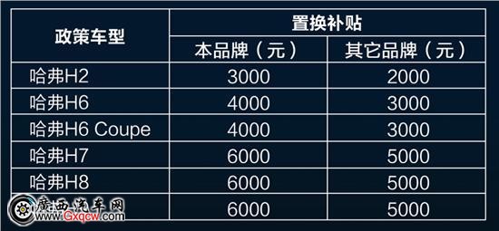 為答謝消費(fèi)者的厚愛,讓更多車友享受到哈弗產(chǎn)品所帶來的可靠品質(zhì),即日起,凡到哈弗4S店置換哈弗H2、哈弗H6、哈弗H6 Coupe、哈弗H7、哈弗H8、哈弗H9任意一款車型,均可享受3000元到6000元不等的置換補(bǔ)貼,讓您的愛車“換”然一新。