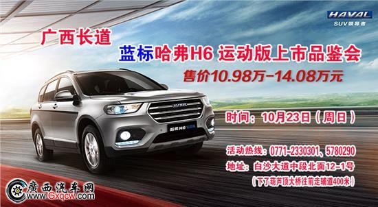 10月23日(周日),廣西長(zhǎng)道藍(lán)標(biāo)哈弗H6運(yùn)動(dòng)版廣西區(qū)域上市品鑒會(huì),真心約定你!