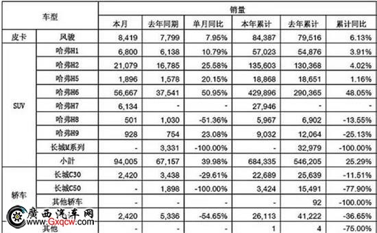 SUV市場已經(jīng)進入“深紅”狀態(tài),競爭日趨白熱化。在聚焦戰(zhàn)略的引導下,長城旗下SUV產(chǎn)品繼續(xù)強勢增長,本月銷售94005輛,同比勁增39.98%;前10個月累計銷售684335輛,同比增長25.29%。