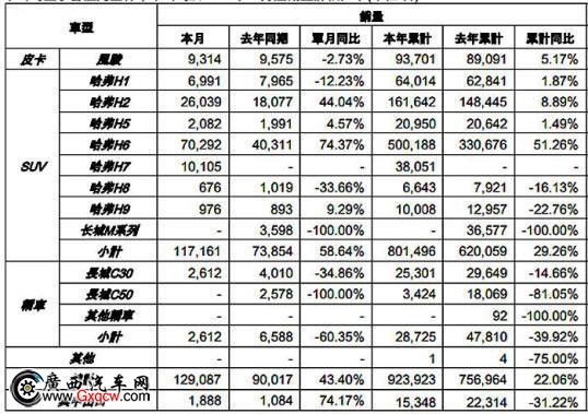 12月6日,長(zhǎng)城汽車(chē)公布11月份產(chǎn)銷快報(bào):共銷售129087輛,同比增長(zhǎng)43.40%。主力車(chē)型亮點(diǎn)紛呈,哈弗H6突破7萬(wàn)輛,中級(jí)SUV哈弗H7突破1萬(wàn)大關(guān),哈弗H2達(dá)到2.6萬(wàn)。1-11月,長(zhǎng)城汽車(chē)?yán)塾?jì)銷售923923輛,已經(jīng)完成年度銷量目標(biāo)(95萬(wàn))的97.3%,全年銷量有望突破百萬(wàn)大關(guān)。