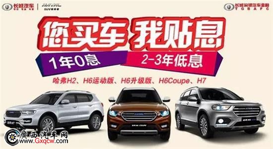 貸款買車的顧客越來越多,哈弗特地推出“您買車我貼息”金融政策,即日起貸款購買哈弗SUV可享受“1年零息”、“2-3年低息”、“首付五成一證貸”等特惠政策,適用于哈弗H7、哈弗H6、哈弗H2(不含H2s)等熱銷車型。