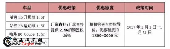 從2017年1月1日起, 1.6L及以下排量車(chē)型的購(gòu)置稅減免由5%調(diào)整為7.5%,很多顧客錯(cuò)失了購(gòu)車(chē)良機(jī),后悔不已。哈弗深知,“開(kāi)新車(chē)過(guò)大年”是很多顧客的夢(mèng)想,為了讓更多顧客輕松開(kāi)上好車(chē),將對(duì)哈弗H6 1.5T(升級(jí)版/運(yùn)動(dòng)版/Coupe)、以及哈弗H2全系(不含H2s)車(chē)型提供2.5%的“廠家直補(bǔ)”。也就是說(shuō),購(gòu)買(mǎi)上述車(chē)型,都將繼續(xù)享受購(gòu)置稅減半政策。