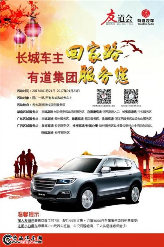有道集團“哈弗情,暖回家路”11條高速20多處服務區(qū)今晨聯(lián)動:愛心紅馬甲們?yōu)殚L城&哈弗車友提供免費專享便民服務,親愛朋友們,如果您是長城&哈弗車主,如果您正在高速返鄉(xiāng),如果您旅途累了,請留意我們指定服務區(qū)停下座駕歇息一會兒吧,停下來喝口溫熱的水,聽聽愛心紅馬甲給您鬧鬧嗑,不僅可邂逅我們暖男技師們,還有一大批免費領禮物來襲……