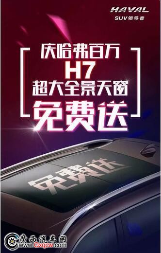 近日,為了慶祝哈弗SUV2016年年銷量突破百萬大關,長城汽車特推出感恩回饋活動。3月1日至3月31日,凡訂購哈弗H7精英版車型的朋友,均可免費升級為全景天窗。而且為了滿足車友的多樣化需求,本次活動藍標哈弗H7、紅標哈弗H7、藍標哈弗H7L三個系列均可參與活動,因此無論您喜歡哪個產(chǎn)品系列,都可享受這一優(yōu)惠!