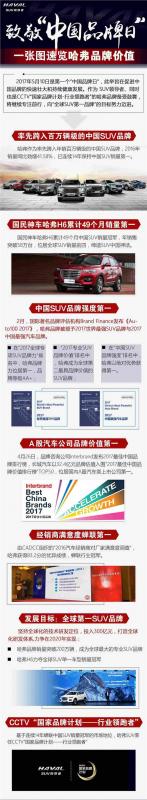 2017年5月10日是**個“中國品牌日”,此舉旨在促進中國品牌的快速壯大和持續(xù)健康發(fā)展。作為 SUV領(lǐng)導者、同時也是CCTV“國家品牌計劃-行業(yè)領(lǐng)跑者”的哈弗品牌備受鼓舞,將繼續(xù)專注前行,向“**SUV第yi品牌”的目標努力邁進。