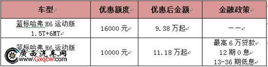 自6月1日起,購(gòu)買藍(lán)標(biāo)哈弗H6運(yùn)動(dòng)版1.5T+6MT手動(dòng)擋車型,*高可享16000元現(xiàn)金優(yōu)惠,1.5T+6AT自動(dòng)擋車型鉅惠10000元,同時(shí)自動(dòng)擋車型還可享受“*高貸款6萬(wàn),12期0息、13-36期低息”金融貼息政策。眾多優(yōu)惠政策,讓這個(gè)盛夏不再炎熱!
