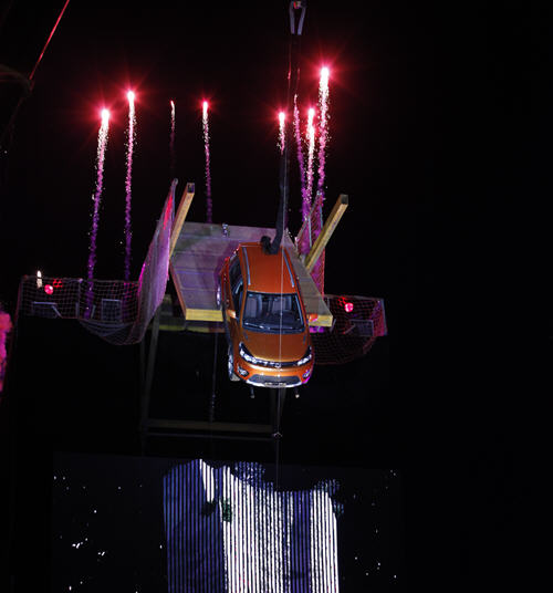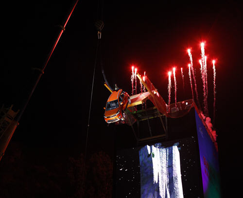 位于京郊四面環(huán)山、景色宜人的哈弗M4上市現(xiàn)場,高高筑起的集裝箱與周圍嚴(yán)陣以待的重型設(shè)備已經(jīng)預(yù)示出這并不是一次尋常的上市發(fā)布會。就在現(xiàn)場氣氛即將被神秘和好奇推向頂點時,哈弗M4以最為出人意料的方式登場,在現(xiàn)場近百名嘉賓的見證下,從20.8米的高空,干凈利索地完成了驚世一躍,完成神州**蹦,驚艷上市。