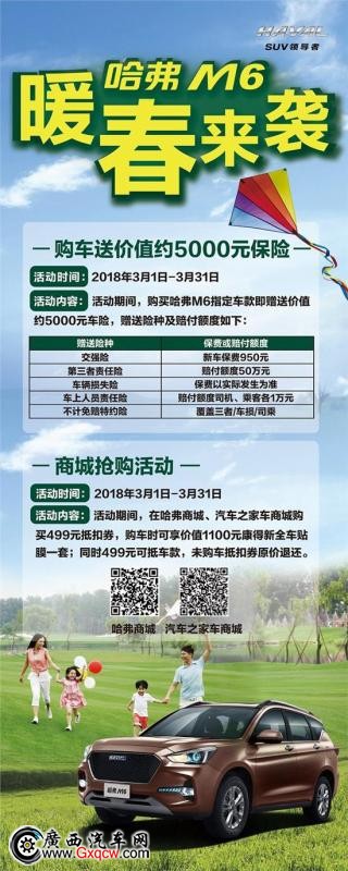 活動一:2018年3月1日-3月31日,購哈弗M6送價值5000元的保險!