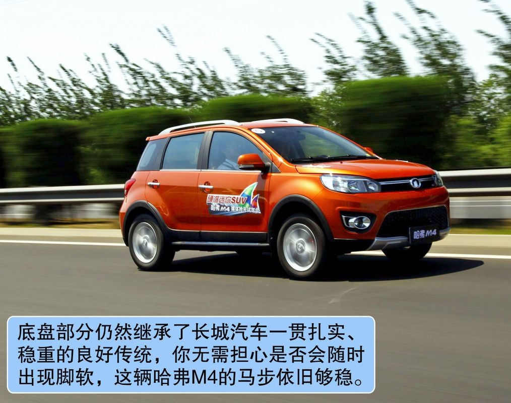 哈弗M4整車尺寸為3961mm×1728mm×1617mm,軸距2383mm,經過扎實調校的底盤擁有出色的結構強度和抗沖擊特性。高達185mm底盤離地間隙,配合16寸鋁合金輪轂、205寬胎,使其具備了同級別車型中征服惡劣路況的**潛質。另外,哈弗M4采用了與合資品牌相同的前麥弗遜/后縱臂扭轉梁復合式半獨立懸架結構,在充分確保高通過性的同時,操控性和舒適性均得以加強,并進一步提升了哈弗M4的駕駛樂趣。