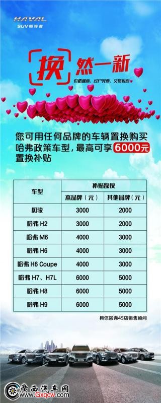 您可用任何品牌的車輛置換購(gòu)買哈弗政策車型,鉅惠高達(dá)6000元置換補(bǔ)貼