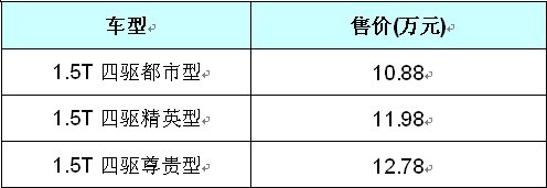 哈弗H61.5T汽油四驅(qū)已上市在售,共都市型、精英型、尊貴型三款車(chē)型,售價(jià)分別為10.88萬(wàn)元、11.98萬(wàn)元、12.78萬(wàn)元。