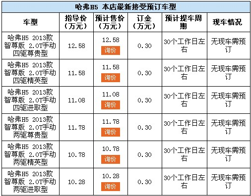 配置方面,2013款哈弗H5智尊版擁有真皮多功能方向盤、換擋提示、博世9.0版ABS+EBD、胎壓監(jiān)測、7安全氣囊和MP5+GPS+倒車影像等。