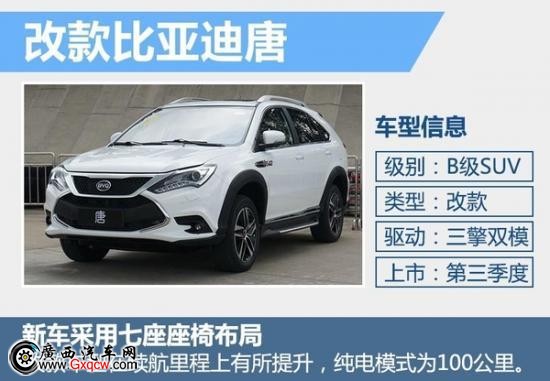 近年來,比亞迪在新能源汽車領(lǐng)域取得的進步大家有目共睹,此前企業(yè)還將發(fā)展對象瞄準(zhǔn)了國內(nèi)火熱的SUV市場,推出了比亞迪旗下首款插電式混合動力SUV“唐”。根據(jù)比亞迪十三五規(guī)劃,今年將重點發(fā)力多款新能源車型。近日,網(wǎng)通社從比亞迪內(nèi)部人士獲悉,比亞迪唐將推出改款車型,并相應(yīng)增加7座版,新車有望于今年三季度正式上市。值得一提的是,新車在純電模式下續(xù)航里程有望達到100公里,相比現(xiàn)款提升25%。