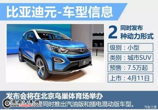 縱觀比亞迪的產(chǎn)品線,目前其已擁有秦、唐、宋三款以中國古朝代命名的車型。根據(jù)規(guī)劃,未來比亞迪還將推出小型SUV“元”。網(wǎng)通社從比亞迪汽車官方獲悉,比亞迪元將于4月11日在北京鳥巢舉行上市發(fā)布會,屆時比亞迪將公布這款車的廠商指導(dǎo)售價。從車型所處區(qū)間來看,比亞迪元汽油版的預(yù)計(jì)起售價格有望在7.5萬元上下,而其插電混合動力版也將同期上市。