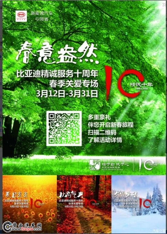 一. 活動主題:春意盎然,比亞迪精誠服務(wù)十周年春季關(guān)愛專場!