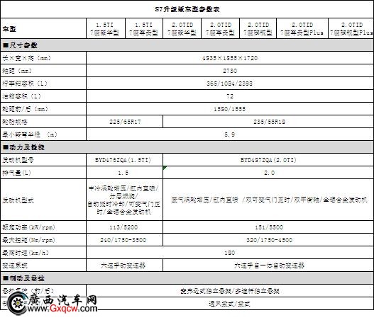 S7升級版車型參數(shù)表