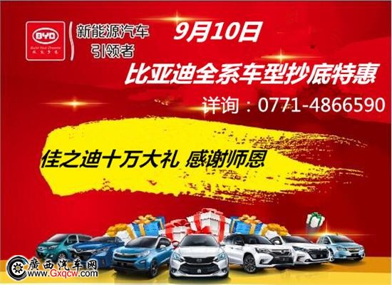 教師節(jié)來(lái)臨,讓我們道一聲:老師,您辛苦了! 在教師節(jié)當(dāng)天,憑教師證到南寧佳之迪購(gòu)車(chē)在原優(yōu)惠基礎(chǔ)上,額外贈(zèng)送佳之迪1000元儲(chǔ)蓄金,還有機(jī)會(huì)獲得十萬(wàn)現(xiàn)金大獎(jiǎng)!