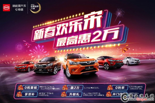 比亞迪汽車“新春歡樂(lè)宋 *高惠兩萬(wàn)”活動(dòng)大鬧元宵節(jié)開(kāi)始啦!比亞迪南寧佳之迪邀您到店搶現(xiàn)車,繼續(xù)享購(gòu)置稅減半政策,SUV綜合優(yōu)惠20000元,參加“幸運(yùn)轉(zhuǎn)盤”,贏取你的新春專屬大禮;更有吃湯圓,猜燈謎等你來(lái)鬧!