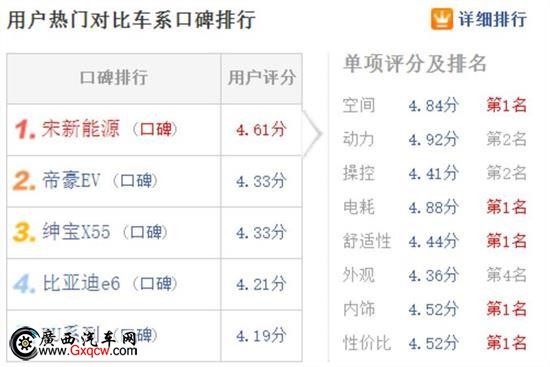 首先,我們來看下性價比、電耗、內(nèi)飾、空間、舒適性這個五個單項排名**的方面用戶對它們的評價都是怎樣的?