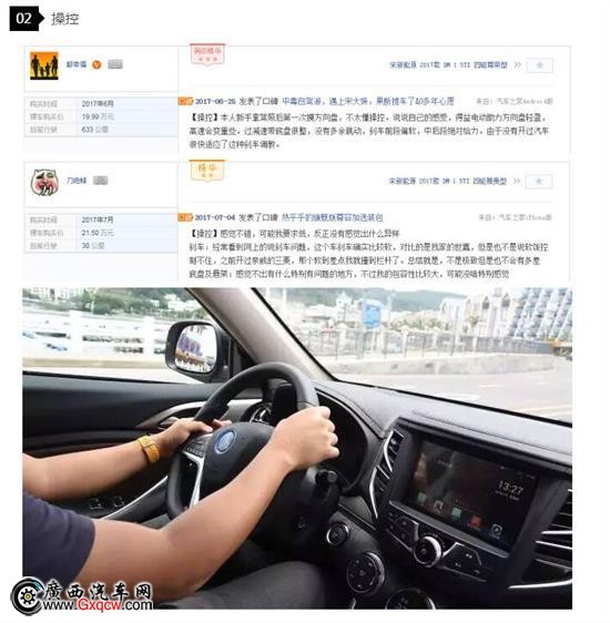 關(guān)于宋DM在操控方面的表現(xiàn),用戶是有褒有貶,綜合來看就是宋DM指向精準(zhǔn),懸掛較硬,但是對振動過濾的不錯,剎車前段偏軟。結(jié)合我自己的試駕感受來說,宋DM轉(zhuǎn)向輕盈,但帶有一定的虛位,指向性一般;懸掛確實比較硬,對于細(xì)小的振動過濾的比較徹底,過減速帶或者較大的溝坎時感覺還是有點兒顛。