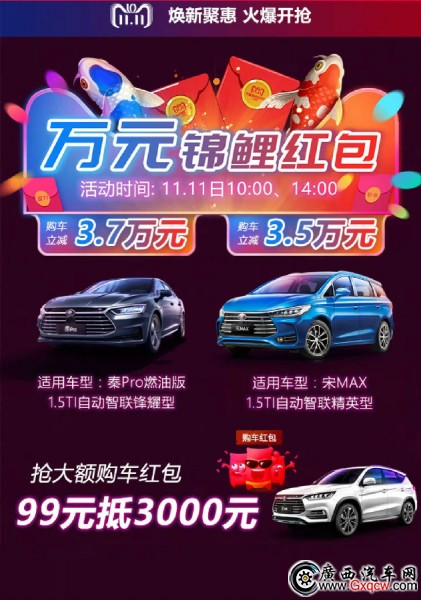 十重禮:王朝煥新 特價(jià)感恩禮,11.11聚惠party推出3臺暢銷車系,搶完即止