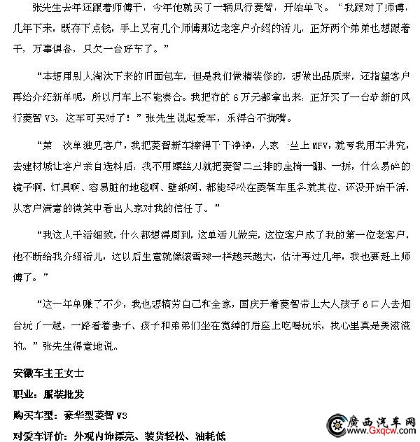 事業(yè)多面手 風(fēng)行菱智V3車主訪談