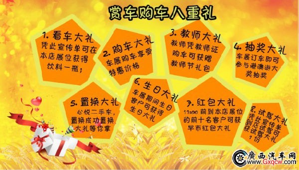 3.教師大禮:教師憑教師證購車可獲贈(zèng)教師節(jié)禮包一份;