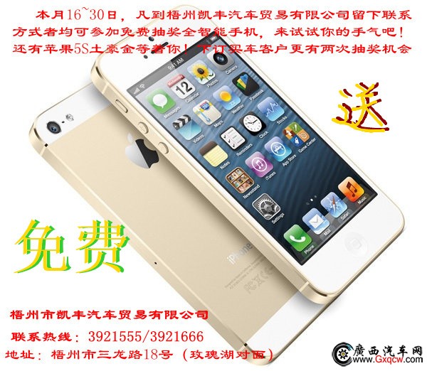 年近了,促銷隨處可見,由梧州市凱豐汽車貿(mào)易有限公司推出的到店抽獎送手機活動也在今天拉開了序幕。