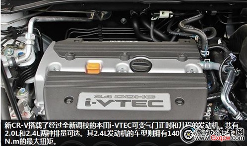 在動力方面,新CR-V搭載了經(jīng)過全新調(diào)校的本田i-VTEC可變氣門正時(shí)和升程的發(fā)動機(jī),共有2.0L和2.4L兩種排量可選。其中搭載2.4L發(fā)動機(jī)的車型擁有140kw*大功率和222 N.m的*大扭矩,動力十分充沛。