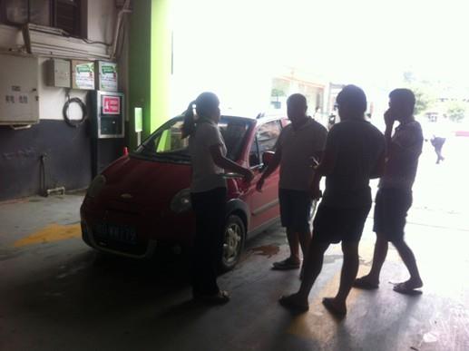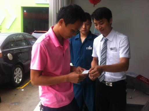 服務(wù)顧問熱情接待參加免費(fèi)檢測活動的車主