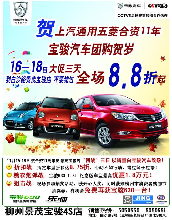 16-18日“SGMW合資十一周年,景茂寶駿周年店慶 好事成雙感恩大回饋”