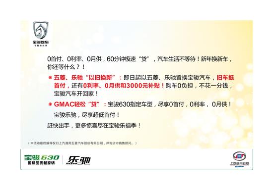 更有“幸福O首付 寶駿輕松貸”新年專項車貸活動,讓你“馬”上有車,只要到白沙景茂寶駿店,包你心想事成!
