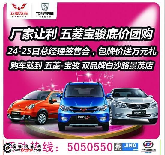 5月24-25日,柳州白沙路五菱寶駿景茂店大型總經(jīng)理簽售會(huì),“簽”載難逢,錯(cuò)過(guò)=過(guò)錯(cuò)!