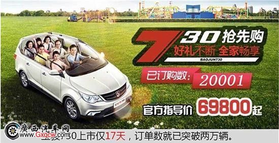截至8月15日上午,“7座家用車”寶駿730上市僅17天,訂單數(shù)就已突破2萬臺,以每天超過700臺的訂單數(shù),即平均2分鐘訂出一臺車的速度增長。