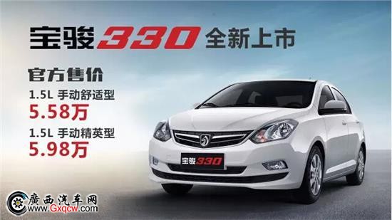 12月18日,上汽通用五菱宣布,旗下首款A(yù)0級(jí)三廂家用轎車寶駿330正式上市。定位“實(shí)惠家轎”的寶駿330共推2款車型,均配備1.5L發(fā)動(dòng)機(jī)及5檔手動(dòng)變速箱,舒適型售價(jià)55,800元,精英型售價(jià)59,800元,提供糖果白、晴空銀、大漠金、瑪瑙紅、星夜黑5種時(shí)尚顏色選擇。